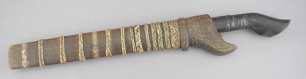 Balinese Pig Knife with Carved Scabbard, 18 5/8"L.