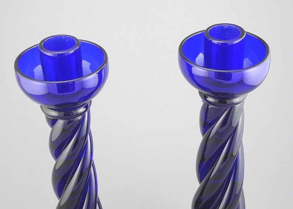 Pair of Archimede Seguso Cobalt Glass Candlesticks, 12 1/8"h.