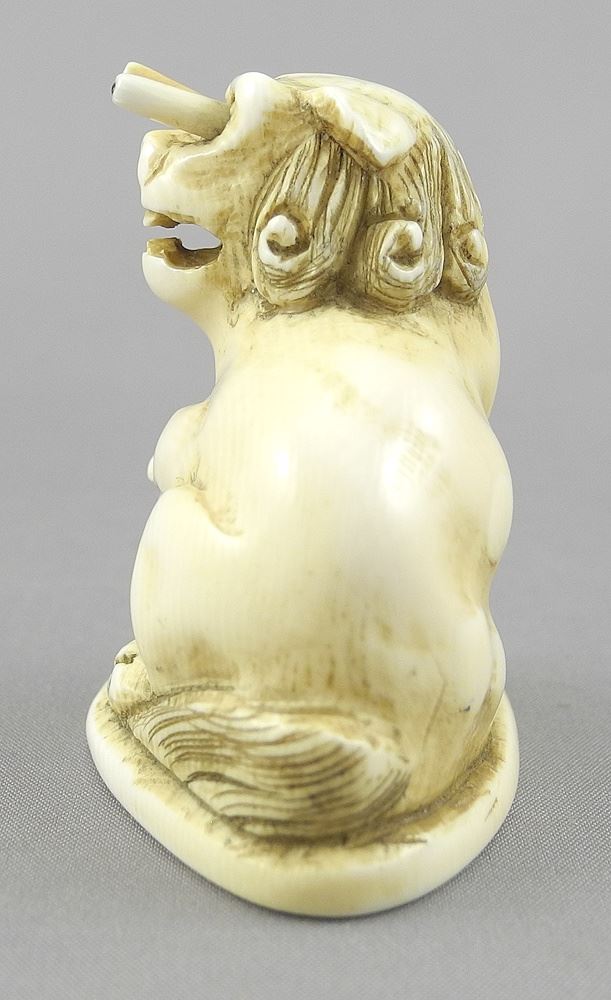 Japanese "Googly Eyed Shi Shi" Netsuke, 1 3/4"h, 32.3g, NO EXPORT.