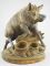 Chinese Export Silver (tests 80%) Jade/Turquoise/Coral Chariot (12"L) on Stand.
