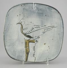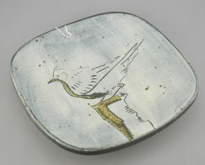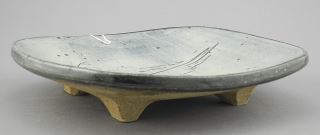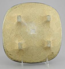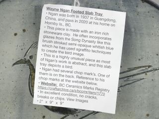 Stoneware Sgraffito Footed Dish with Impressed Mark of Wayne Ngan, 2 x 9 x 9".