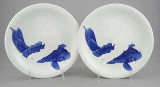 LOT 116 Three Fukudaya Hirado Porcelain Embossed Carp Dishes, 8 1/2" Diam. Estimate: $600 - $1,200 Sold For: $550 Auction Date: Tuesday, December 09 2025 at 4:00 PM