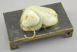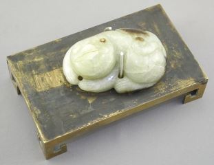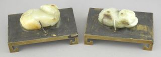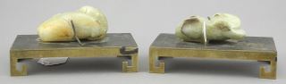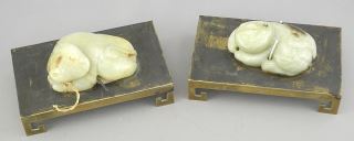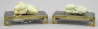 LOT 27 Pair of Chinese Jade Chimaeras (3"L) Mounted on Brass Stands, 5"L. Estimate: $300 - $500 Sold For: $600 Auction Date: Tuesday, December 09 2025 at 4:00 PM