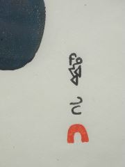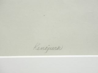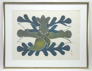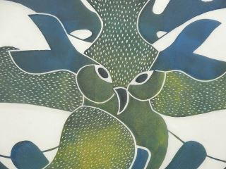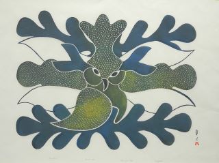 Stonecut signed Kenoujuak (Ashevak), 23 x 31 1/2", "Blue Owl" #26/50, 1969.