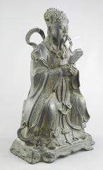 LOT 138 Ming Iron Daoist Figure of Wenchang, 12 3/8"h, 3460g (as found). Estimate: $2,000 - $3,000 Sold For: $2,000 Auction Date: Tuesday, December 09 2025 at 4:00 PM