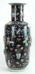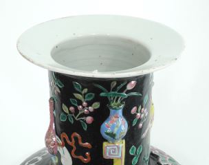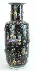 LOT 20 Chinese Black Ground Famille Rose Porcelain "Sacrificial Treasures" Vase, 23"h (minor resto.). Estimate: $4,000 - $5,000 Auction Date: Tuesday, December 09 2025 at 4:00 PM