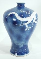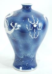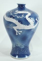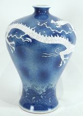 Chinese Blue & White Molded Porcelain "Dragon" Vase, Xuande Mark, 13"h.