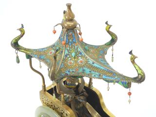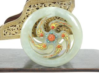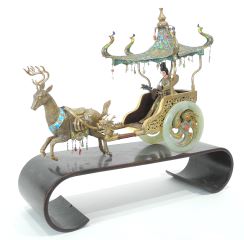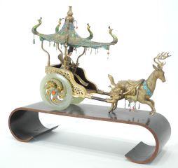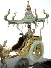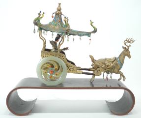 LOT 123 Chinese Export Silver (tests 80%) Jade/Turquoise/Coral Chariot (12"L) on Stand. Estimate: $1,000 - $1,500 Sold For: $900 Auction Date: Tuesday, December 09 2025 at 4:00 PM