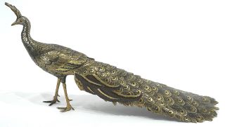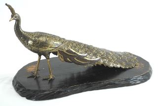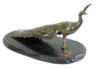LOT 186 Japanese Gilt Bronze Peacock Figure (21 1/2"L), signed with Stand. Estimate: $300 - $500 Sold For: $450 Auction Date: Tuesday, December 09 2025 at 4:00 PM