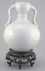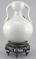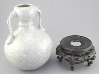 Ge Ware Style Chinese Porcelain Vase with Qianlong Mark (8 3/4"h) with Stand.
