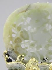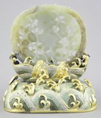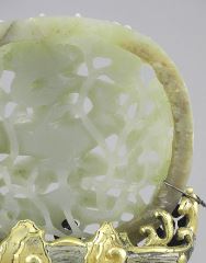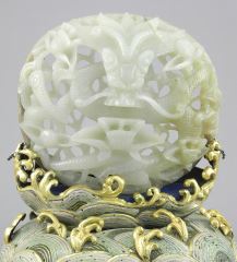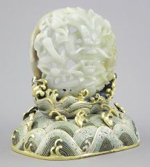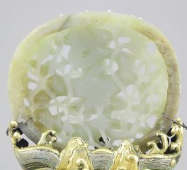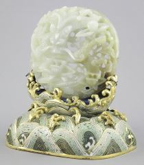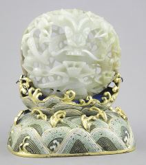 Chinese Jade "Dragon" Carving on Gilt Metal Cloisonne Base, 5 x 4 1/2 x 3 1/4".