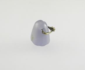Assyrian Blue Chalcedony Stamp Seal Engraved with Nabu on Wire bail, 1/2" H, 6.1g.