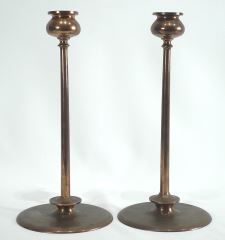 LOT 46 Pair of Arts & Crafts Copper Alloy Candlesticks, 12 1/4"h. Estimate: $150 - $300 Sold For: $500 Auction Date: Tuesday, December 09 2025 at 4:00 PM