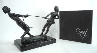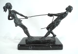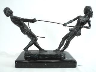LOT 47 Bronze Sculpture signed Gogy (Georgina Arellanos Farias), 13 1/4 x 21 x 8", "Tug of War". Estimate: $300 - $500 Sold For: $500 Auction Date: Tuesday, December 09 2025 at 4:00 PM