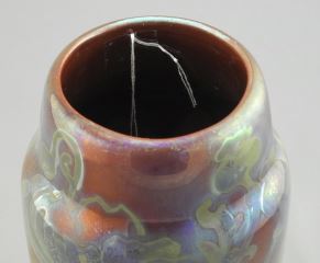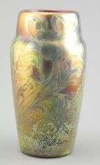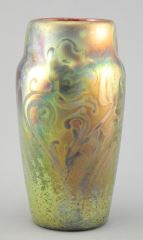 LOT 53 Weller Jacques Sicard Iridescent Glaze Vase (inner rim noted). Estimate: $200 - $400 Sold For: $450 Auction Date: Tuesday, December 09 2025 at 4:00 PM