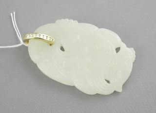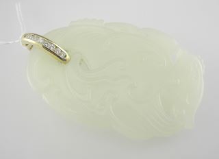 LOT 39 Jade Phoenix Pendant with 14K (tested) Diamond Bail, TW 28g. Estimate: $400 - $500 Auction Date: Tuesday, December 09 2025 at 4:00 PM