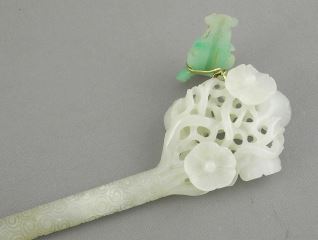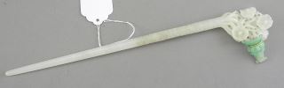 LOT 202 Chinese Jade Hairpin, 9 1/2"L, 43.7g Estimate: $300 - $500 Sold For: $300 Auction Date: Tuesday, December 09 2025 at 4:00 PM