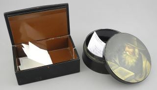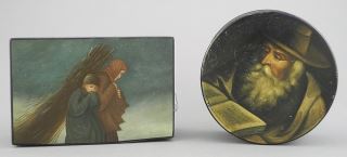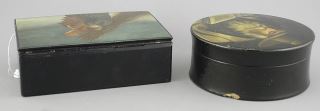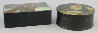 Two 19th C. Russian Lacquer Boxes, Figural Subjects, 4 1/2 - 5"w.