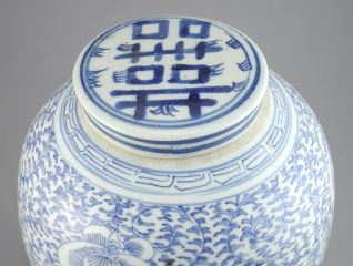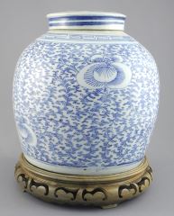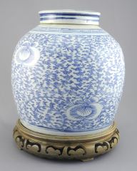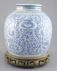 LOT 30 Qing Dynasty Blue & White "Lotus" Ginger Jar with Lid & Stand, 8 1/2"h Estimate: $200 - $400 Auction Date: Tuesday, March 03 2026 at 4:00 PM