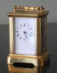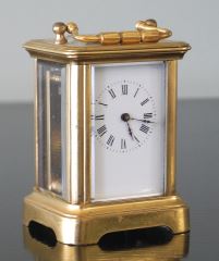 LOT 53 Victorian Miniature Brass Carriage Clock with Case & Key, 3 1/2" to Handle. Estimate: $300 - $500 Sold For: $375 Auction Date: Tuesday, March 03 2026 at 4:00 PM
