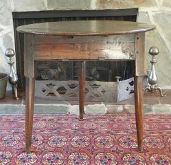 18th C. Oak Cricket Table, 28"d x 24"h.