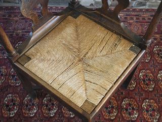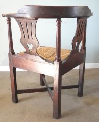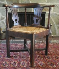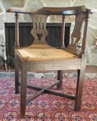 LOT 59 Georgian Oak Corner Chair with Rush Seating, 29 1/2 Arm to Arm, 33"h. Estimate: $300 - $600 Sold For: $325 Auction Date: Tuesday, March 03 2026 at 4:00 PM