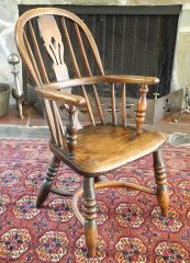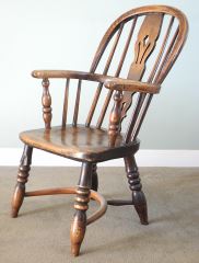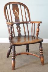 LOT 33 19th C. Child's Elm & Yew Windsor Armchair, 28". Estimate: $300 - $500 Sold For: $250 Auction Date: Tuesday, March 03 2026 at 4:00 PM