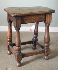 LOT 3 18th C. Oak Joint Stool, 17 x 11 x 20"h. Estimate: $150 - $250 Sold For: $275 Auction Date: Tuesday, March 03 2026 at 4:00 PM