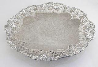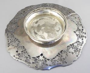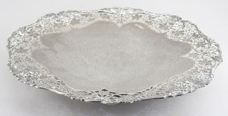 LOT 168 Hallmarked Silver Open Work Footed Dish, 11 1/8" Diameter, 670g. Estimate: $1,000 - $1,500 Sold For: $1,500 Auction Date: Tuesday, March 03 2026 at 4:00 PM
