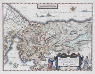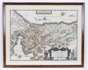 LOT 19 1629 Hand Coloured Willem Blaeuw Map of The Promised Land/Palestine, 15 x 19 3/4". Estimate: $400 - $600 Auction Date: Tuesday, March 03 2026 at 4:00 PM