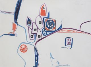 LOT 13 Watercolour signed Alex Janvier '64, 10 5/8 x 14 1/4", "Night Out", AJ64046. Estimate: $1,500 - $3,000 Sold For: $1,400 Auction Date: Tuesday, March 03 2026 at 4:00 PM