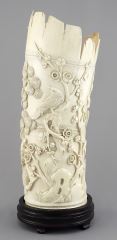 LOT 122 Japanese Carved Tusk Section on Stand, 12"h, CANADIAN BIDDERS ONLY. - Estimate: $400 - $600 Sold For: $1,100 Auction Date: Tuesday, March 03 2026 at 4:00 PM