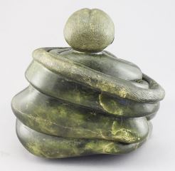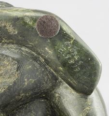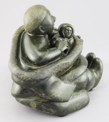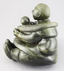 LOT 54 Inuit Stone Carving signed Moses (Aupaluktuk) E-9833, 6 7/8"h, "Seated Mother & Child". Estimate: $300 - $500 Sold For: $600 Auction Date: Tuesday, March 03 2026 at 4:00 PM