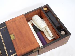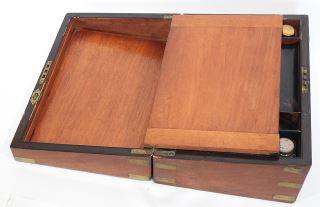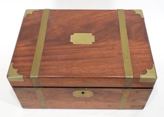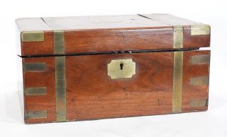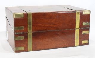 LOT 34 19th C. Brass Bound Mahogany Writing Box, 13 7/8"L. Estimate: $200 - $300 Sold For: $350 Auction Date: Tuesday, March 03 2026 at 4:00 PM