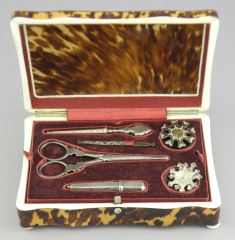 LOT 47 Dutch Tortoiseshell Sewing Box with Silver Fitments, CANADIAN BIDDERS ONLY. Estimate: $250 - $400 Sold For: $425 Auction Date: Tuesday, March 03 2026 at 4:00 PM