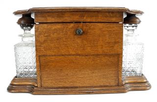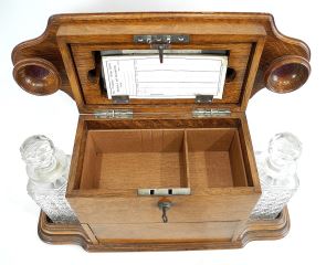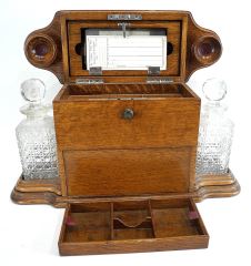 LOT 179 Oak Dual Bottle Tantalus, 11 x 20 1/2 x 7 1/4". Estimate: $300 - $500 Sold For: $1,600 Auction Date: Tuesday, March 03 2026 at 4:00 PM