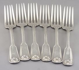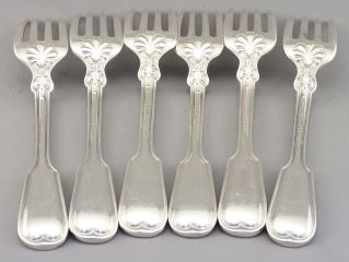 LOT 172 Six Tiffany Sterling English King Pattern Forks, 6 3/4"L, 391g. Estimate: $600 - $800 Sold For: $750 Auction Date: Tuesday, March 03 2026 at 4:00 PM