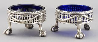 LOT 73 Hallmarked Ball & Claw Open Salts, London/1854, 1 1/2 x 2 1/2"w, 122g. Estimate: $200 - $300 Sold For: $275 Auction Date: Tuesday, March 03 2026 at 4:00 PM