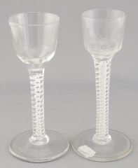 LOT 163 Two Georgian Double Twist Wine Glasses, 5 5/8 & 5 3/4"h. Estimate: $200 - $300 Sold For: $250 Auction Date: Tuesday, March 03 2026 at 4:00 PM