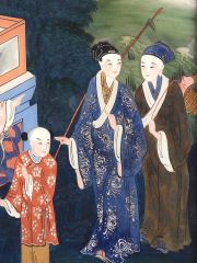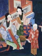 LOT 214 Chinese Reverse Painting on Glass, 19 1/4 x 13 1/8", "Figures Outside Pavillion". Estimate: $300 - $500 Sold For: $250 Auction Date: Tuesday, March 03 2026 at 4:00 PM