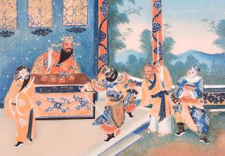 LOT 140 Chinese Reverse Painting on Glass, 13 3/8 x 19 1/4", "Bearded Swordsman". Estimate: $300 - $500 Auction Date: Tuesday, March 03 2026 at 4:00 PM