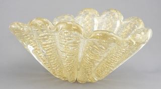 LOT 110 Barovier & Toso "Cordonato d'oro" Glass Bowl, 4 1/4 x 9 1/4 x 7 1/4". Estimate: $200 - $300 Auction Date: Tuesday, March 03 2026 at 4:00 PM