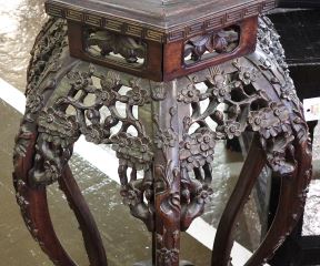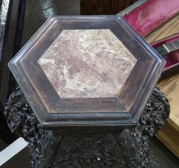 LOT 154 Chinese Carved Hardwood Stone Inset Hexagonal Stand, 31 1/8"h. Estimate: $250 - $400 Sold For: $500 Auction Date: Tuesday, March 03 2026 at 4:00 PM