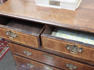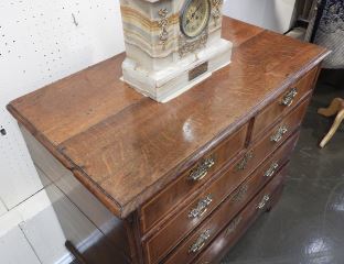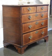 LOT 66 Early 18th C. Banded Oak Chest of Drawers, 35 1/2 x 37 1/2 x 20 1/2". Estimate: $400 - $600 Auction Date: Tuesday, March 03 2026 at 4:00 PM
