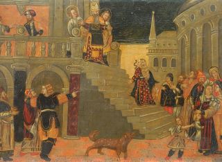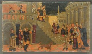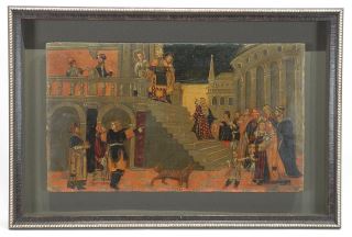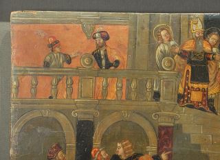 Late Renaissance Style Tempera on Pine Pictorial Panel, 14 1/2 x 25".
