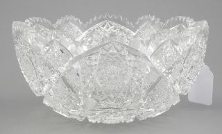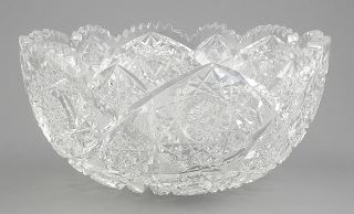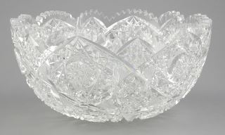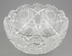LOT 62 American Brilliant Period Cut Crystal Bowl, 3 3/4 x 8" Diameter (one point chipped). Estimate: $100 - $120 Sold For: $75 Auction Date: Tuesday, March 03 2026 at 4:00 PM