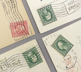 Collection of Stamps: G. Washington: Red 1925 Green 1912 & Undated, B. Franklin Green 1912.