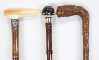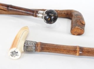 LOT 165 Collection of 19th C. Silver & Natural Canes, 35-36", CANADIAN BIDDERS ONLY. Estimate: $200 - $300 Sold For: $275 Auction Date: Tuesday, March 03 2026 at 4:00 PM