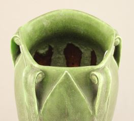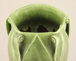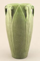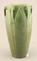 LOT 22 c.1910 Grueby Faience Company Vase Attributed to George P. Kendrick, 9 1/8"h, Made in the USA. Estimate: $1,000 - $2,000 Sold For: $5,500 Auction Date: Tuesday, March 03 2026 at 4:00 PM