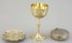 Hallmarked Gilt Silver Chalice & Paten (3 1/2"h/92g) with Hallmarked Silver Pyx